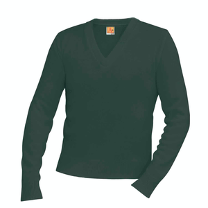 • GREEN V-NECK PULLOVER SWEATER with school logo