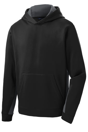 GILROY MIDDLE SCHOOL COLOR BLOCK BLACK&GREY PERFORMANCE HOODIE (YST235) w/ gator logo